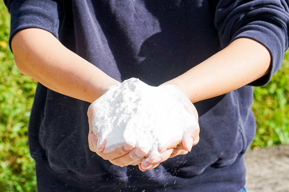 また、新たな取り組みとして、酒米の白糠を使用したお酒造りに取り組んでいます。日本酒で大吟醸を作る際には、精米歩合50%までお米の磨きが行われます。これはつまり、50%以下までお米が削られるということで、その削り粕が発生します。これが酒米の白糠です。多くが家畜のえさやシイタケの菌床など活用はされていますが、人間の食糧になるものは一部です。この白糠を調達し、我々の技術でお酒としてアップサイクルすることで、日本の米の付加価値向上、お米の生産者に感謝、そして食料自給率に貢献したい考えています。自給率が高いということが、自由であるということだと思います。それで出来上がった最初の製品が「blanc(ブラン)」という弊社のジンです。ブランには、blanc(白)とbran(糠)の響きから命名しました。お米をアルコールの主原料にすることは非常に手間がかかりますが、とても日本らしいクラフトジンが出来上がったと自負しています。